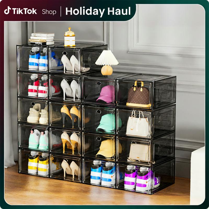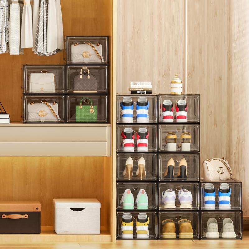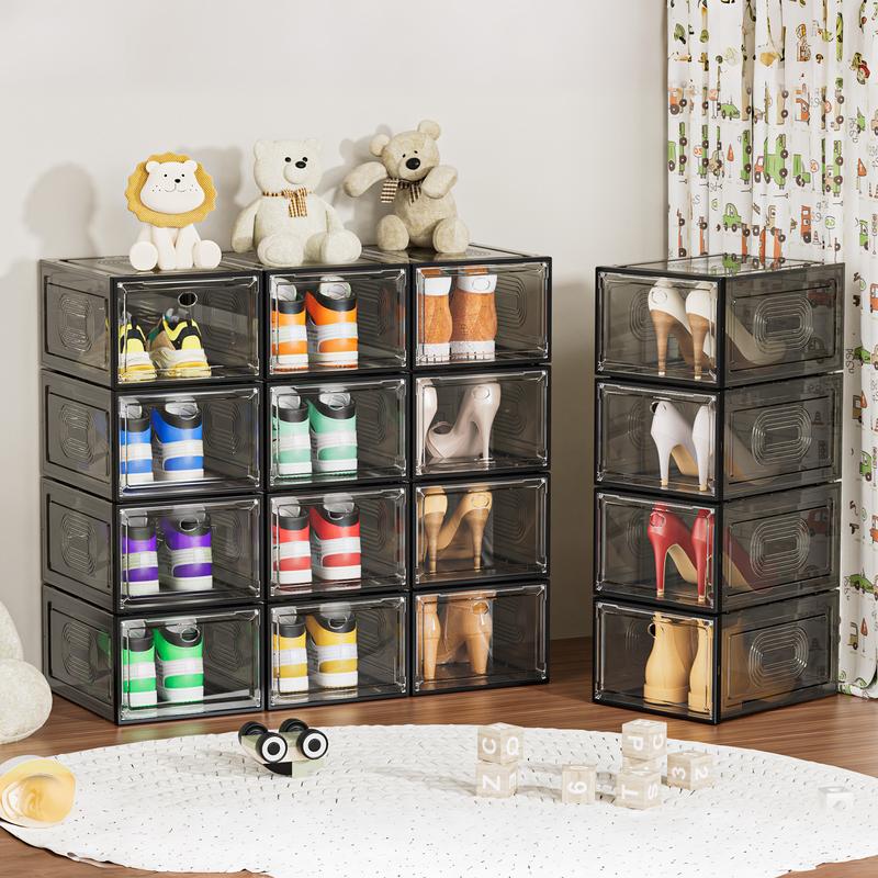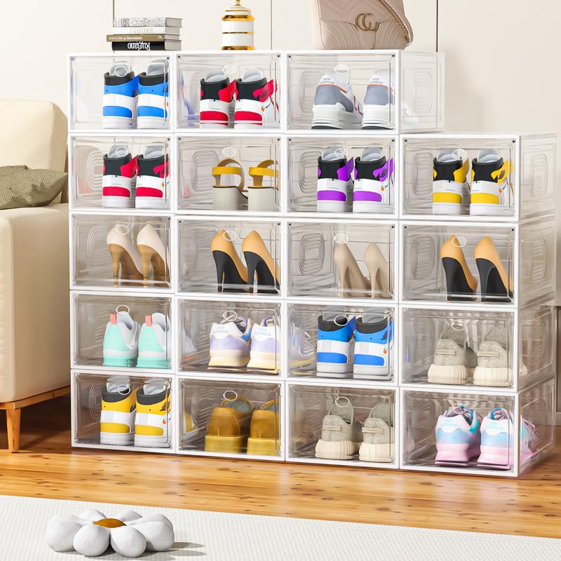 7CODE 12- Packs Thicken & Sturdy Stackable Shoe Organizer for Sport Sneaker Display 10 Pack White Adjustable Standing Shelf Racks Upgraded Sturdy Shoe Storage Box Plastic
