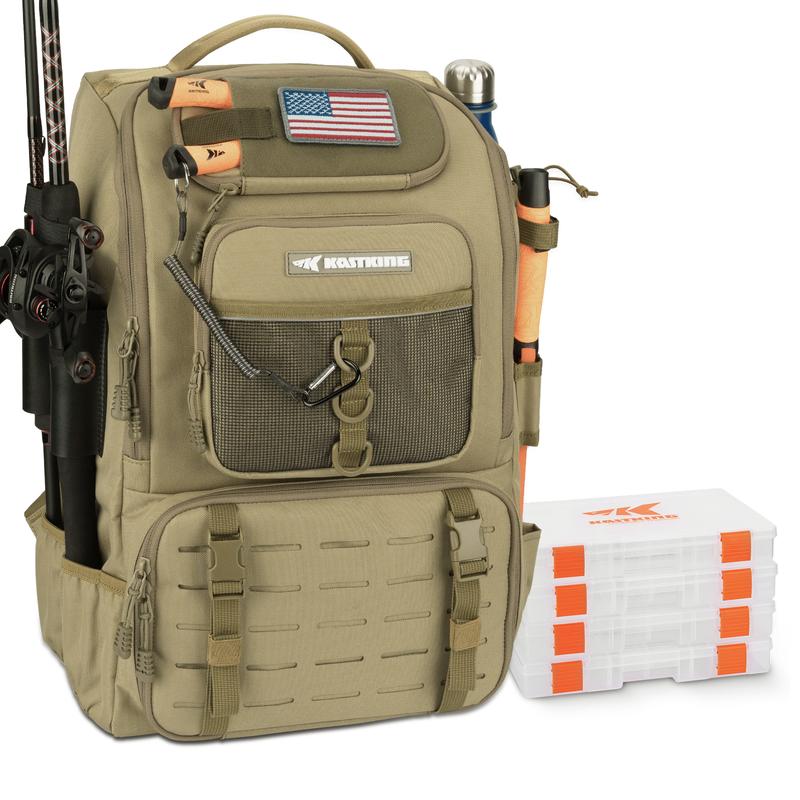 KastKing Karryall Fishing Tackle Backpack with Rod Holders 4 Tackle Boxes,40L Fishing Bag Storage Fishing Gear and Equipment, Multi-Functional Storage ,Waterproof & Durable Fishing Bag Ideal for Camping & Outdoor Activities Hunting