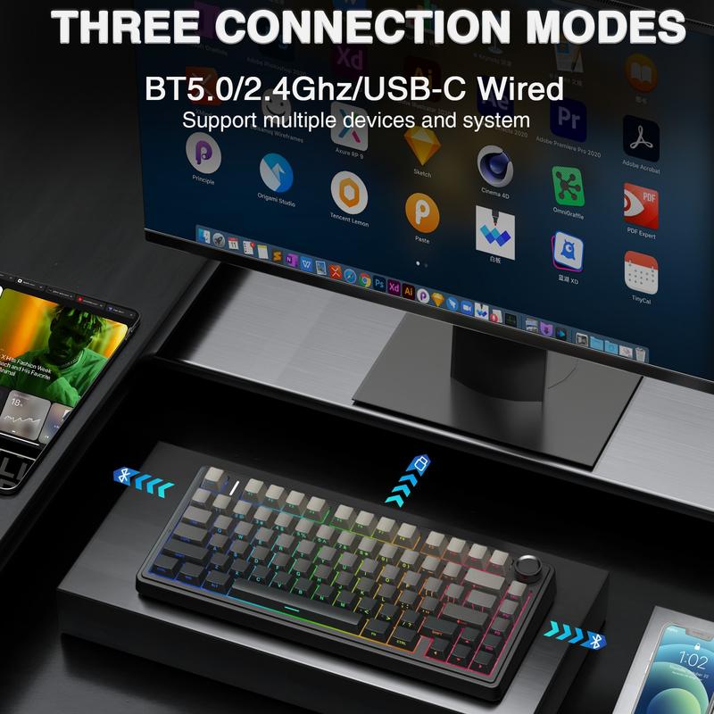 OFFICIAL AULA F75 Pro Wireless Mechanical Keyboard, 75% Hot-Swappable, USB Charging, RGB Backlight, PBT Side-Printed Keycaps, Gaming Keyboard, Office, Multimedia Scroll Wheel, Creamy Keyboards back school supplies PC accessories TikTokShopfalldealsfo